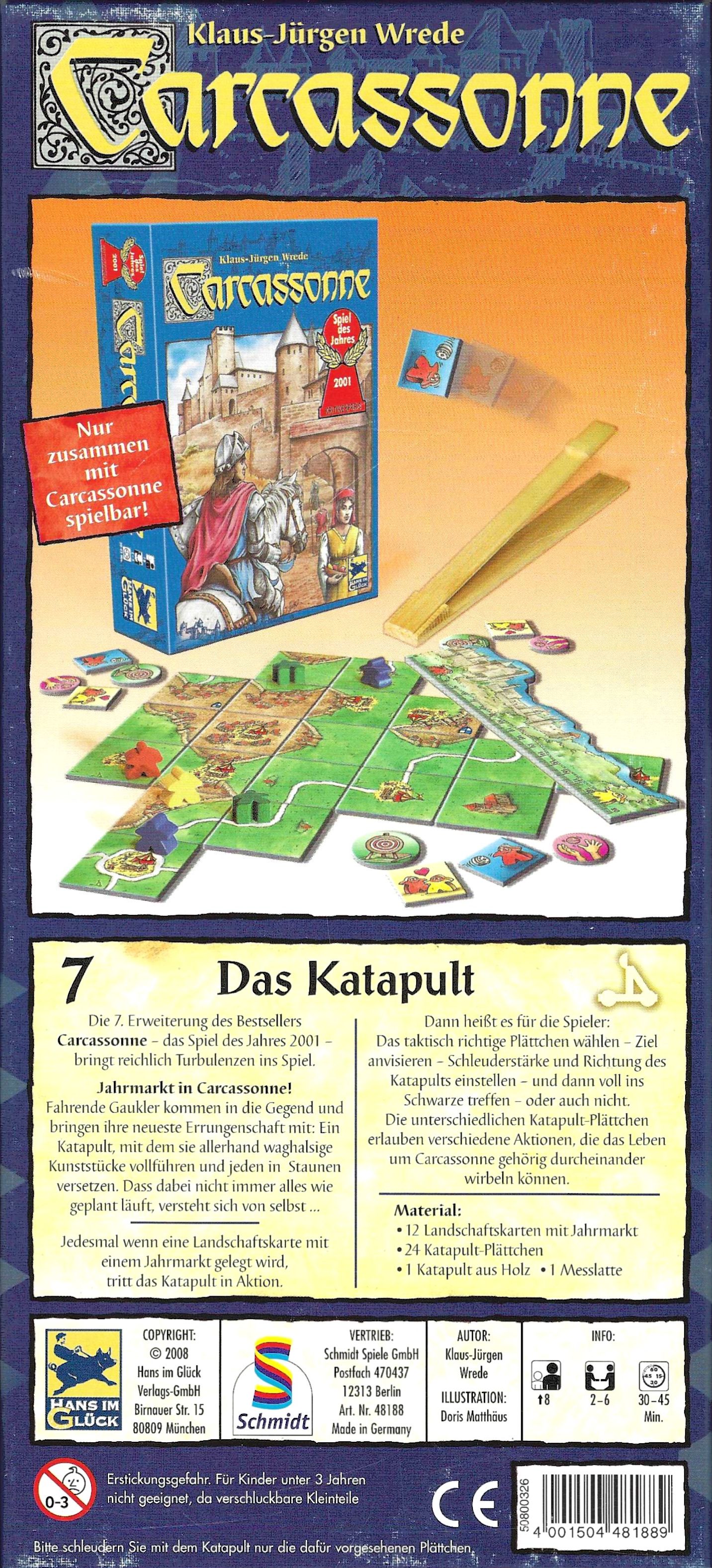 Das Katapult ist die siebte große Erweiterung für Carcassonne und bringt einige neue Aspekte in