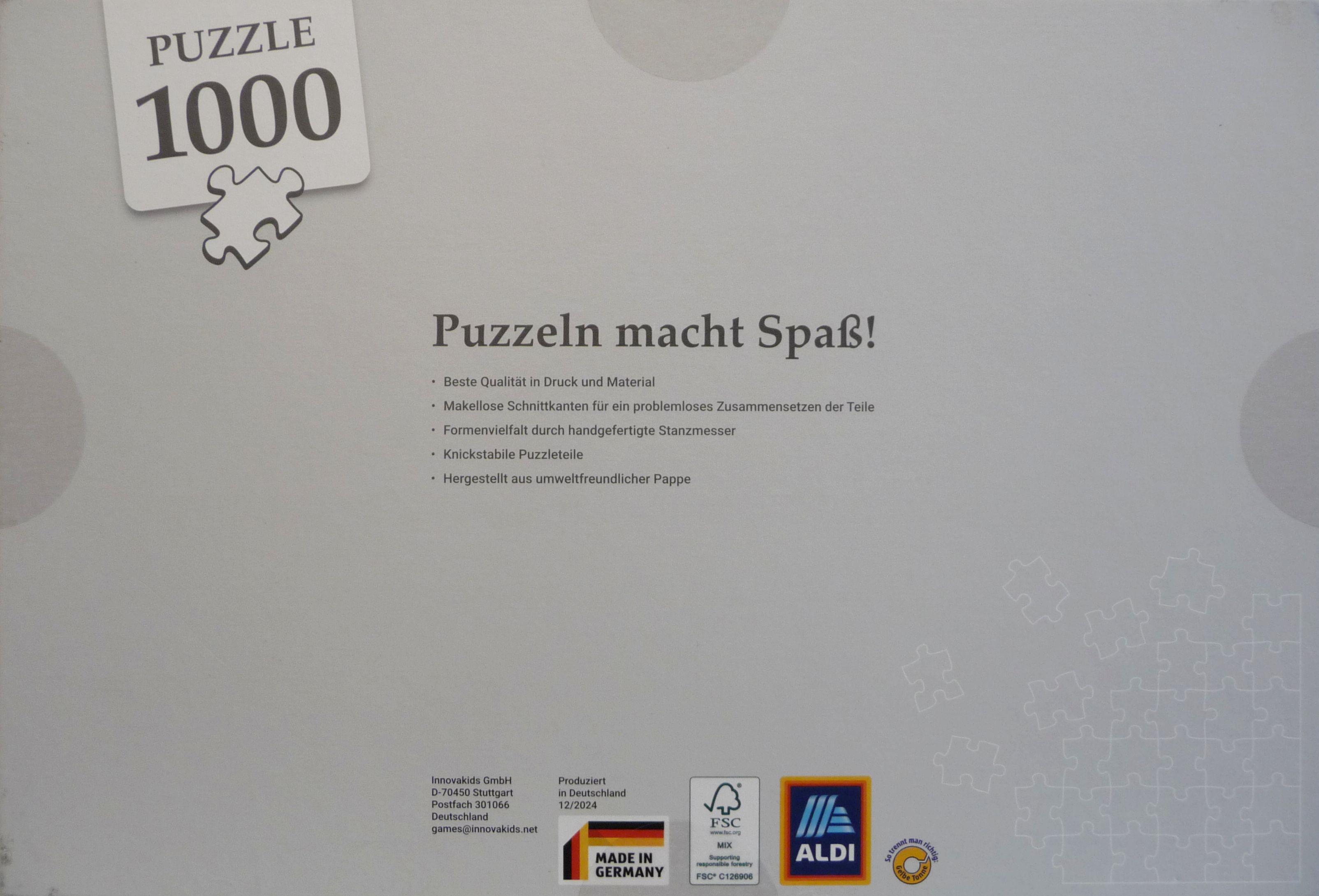 Die fertige Größe des Puzzles beträgt 70 x 50 cm.